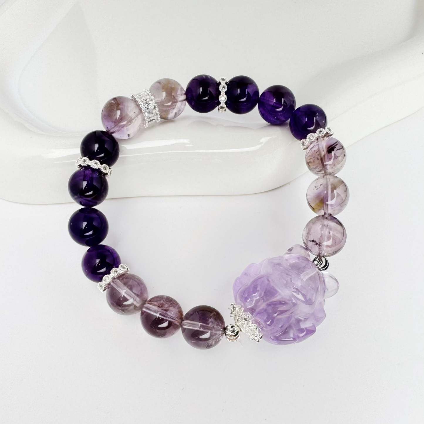 Amethyst Beaded Bracelet Fox 10mm Healing Aura