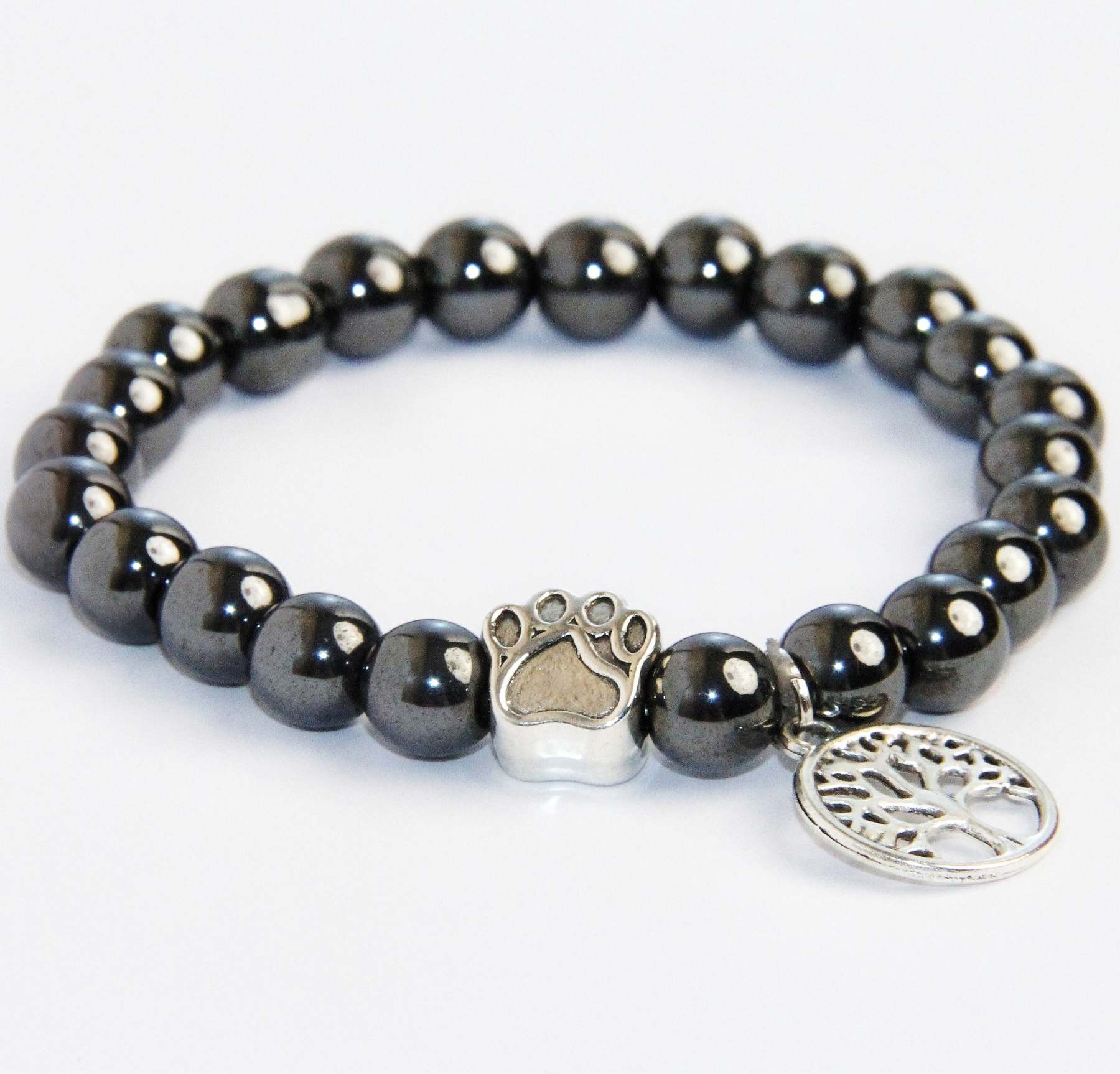 Black Obsidian Bracelet With Paw And Life-tree Bead